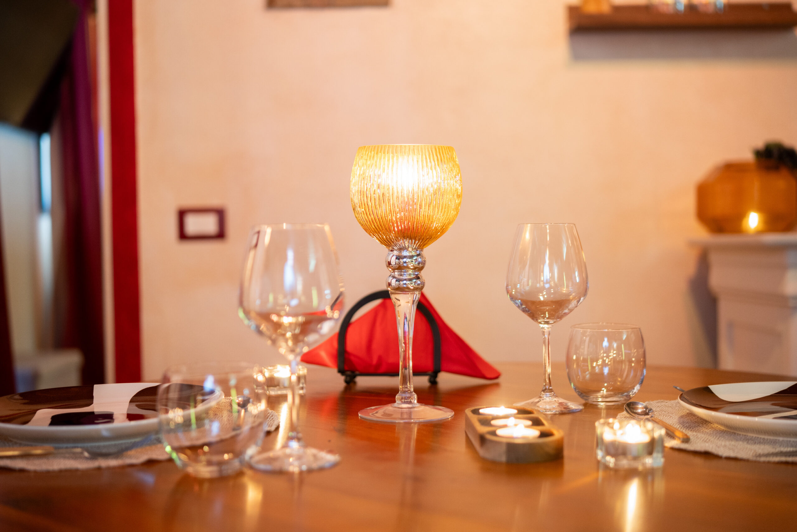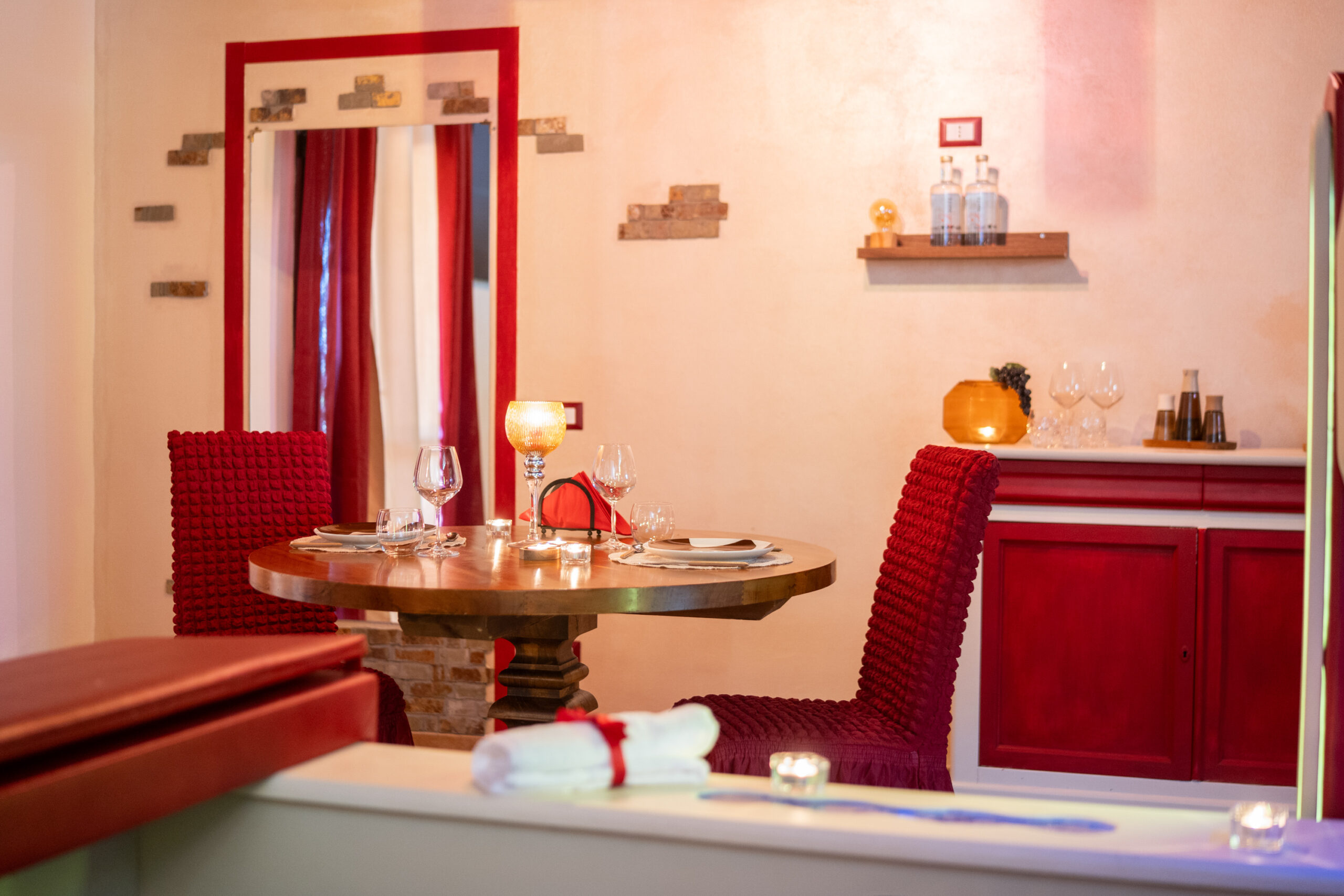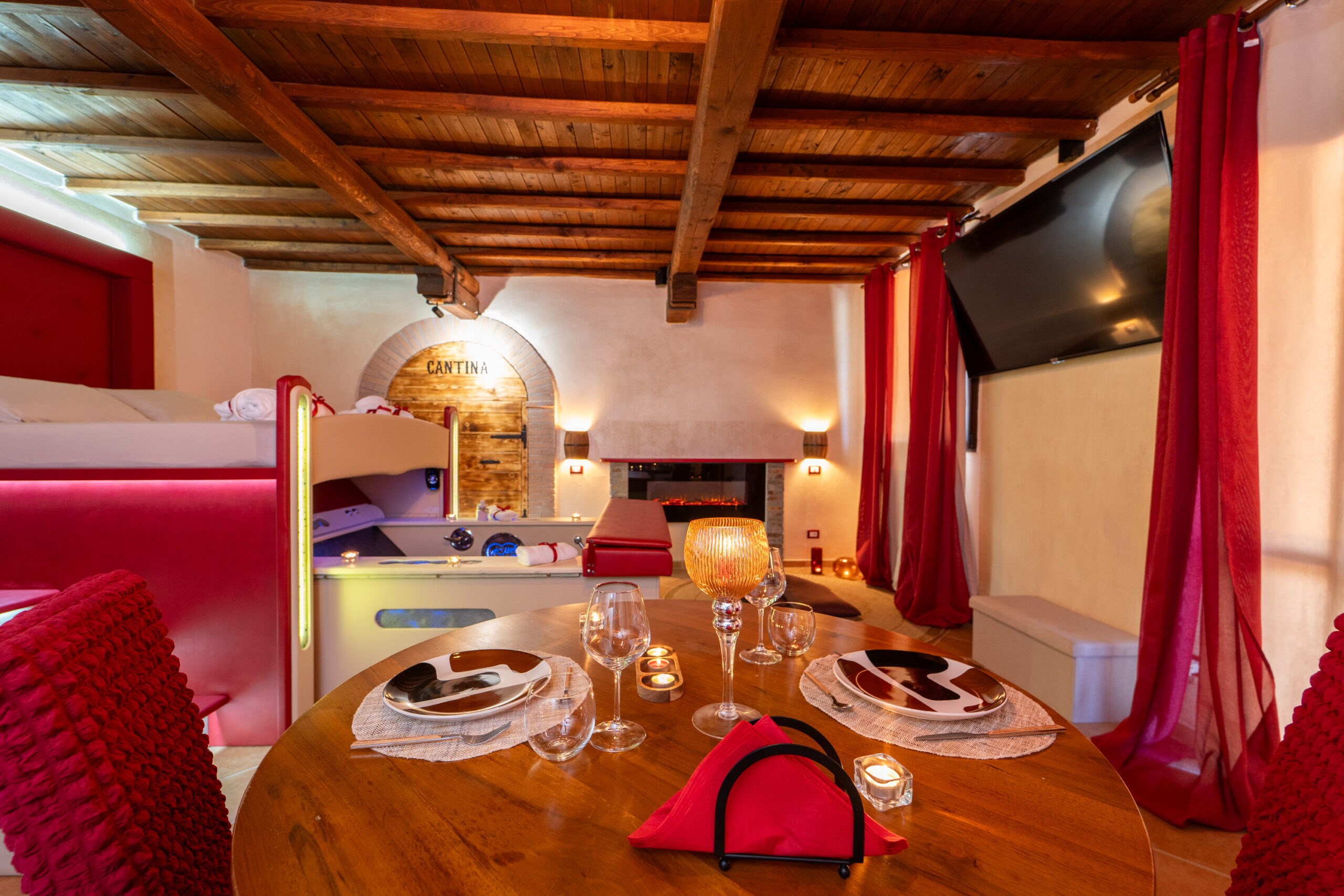 La camera dispone anche di tavolo per degustare romantiche cene per due persone al lume di candela e angolo snack bar con macchina del caffè, bollitore e bagno.